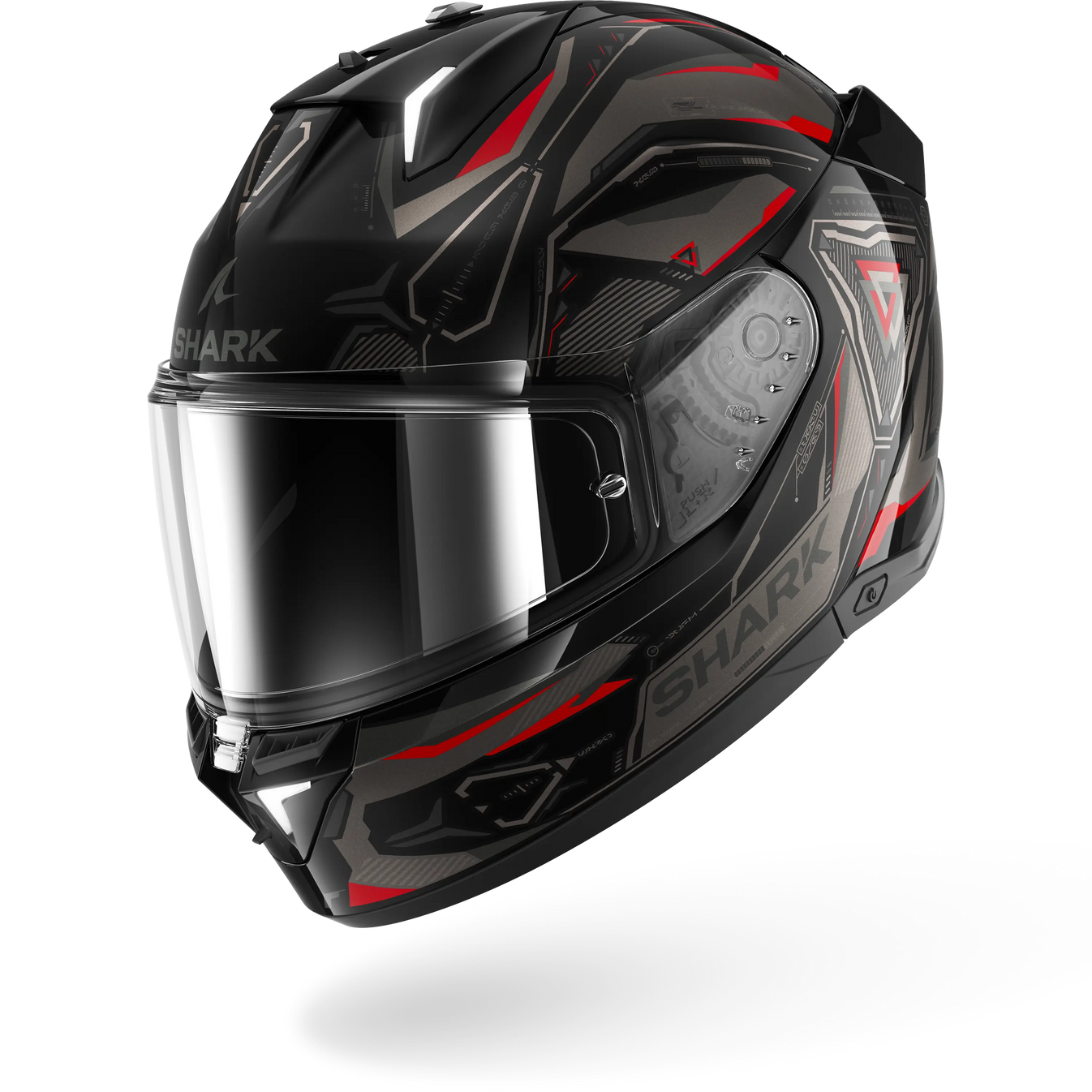 Conforme alla normativa UNECE 22-06, offre una visiera parasole antigraffio e antiappannamento, una visiera SHARK “BEST FIT” e un sistema di sgancio rapido per la visiera ad alta resistenza ottica 1, dotata di Pinlock® 70.
